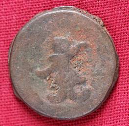 | Description / विवरण | The shape of the coin is circular. Obverse Kushana type king, standing with his right hand curved upwards and his left hand extended. Reverse Probably the figure of MAO or Moon-God with his right hand curved upwards and the crescent above the left shoulder. |