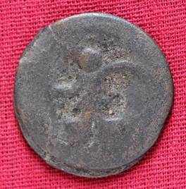 | Description / विवरण | The shape of the coin is circular. Obverse Kushana type king, standing with his right hand curved upwards and his left hand extended. Reverse Probably the figure of MAO or Moon-God with his right hand slightly curved upwards and the crescent above the left shoulder. |