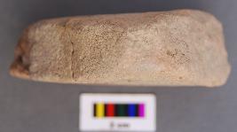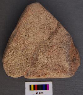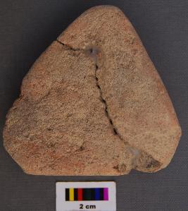 | Description / विवरण | It is a triangular terracotta cake with blunt corners. It was broken in two pieces and refitted. |