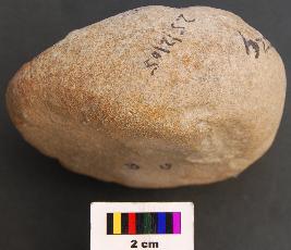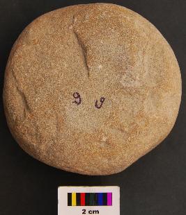 | Description / विवरण | It is a disc like stone object with very thick section. Some portion of the surface is polished whereas remaining has batter marks. It is therefore identified as hammer. |