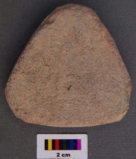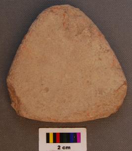 | Description / विवरण | It is a triangular terracotta cake with one blunt corner whereas two others are partially broken. |