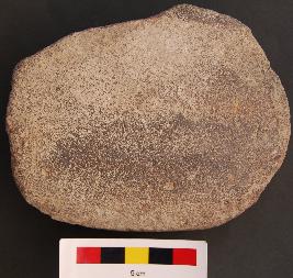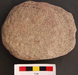 | Description / विवरण | It is a roughly circular object. It is flat and polished on one side which may have been used as a muller. |