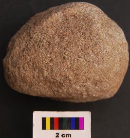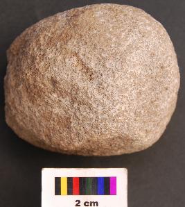 | Description / विवरण | It is a roughly round stone object with batter marks. |