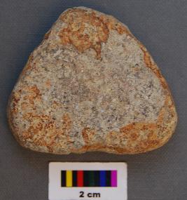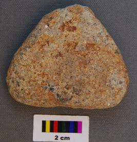 | Description / विवरण | It is a small triangular terracotta cake with blunt corners and thick section. |