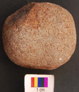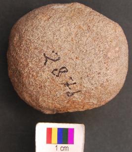 | Description / विवरण | It is roughly round stone ball with partially broken surface. It may be a hammer. |