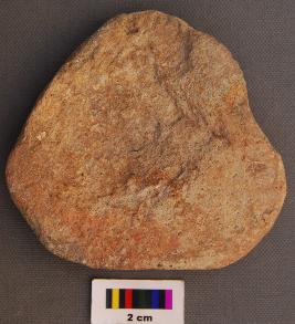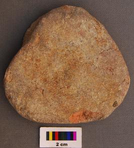 | Description / विवरण | It is a triangular terracotta cake with round corners, uneven thickness and a large chunk is broken from the body part. |