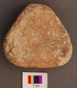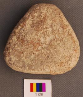 | Description / विवरण | It is a small triangular terracotta cake with blunt corners, thick section. |