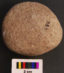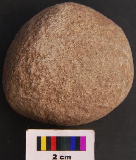 | Description / विवरण | It is a roughly round stone object perhaps used as a hammer as has granular surface with batter marks. |