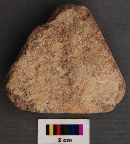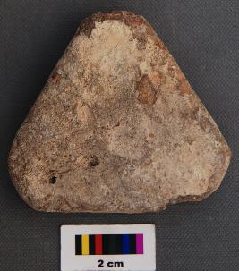 | Description / विवरण | It is a triangular terracotta cake with blunt corners and thick section. |