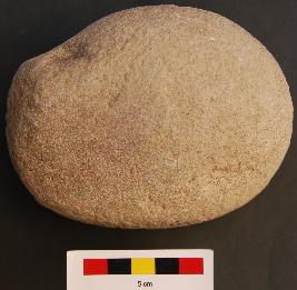 | Description / विवरण | It is a large oblong stone object, which was used as a muller on one side and as sharpner on the other. |