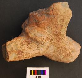 | Description / विवरण | It is a terracotta object with three arms. It is perhaps a stand. It has cloth impression on one of the arms. |