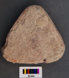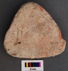 | Description / विवरण | It is a triangular terracotta cake with blunt corners and uneven thickness. |