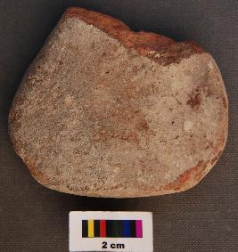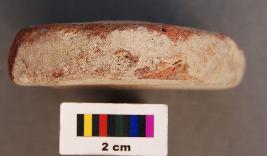 | Description / विवरण | It is a triangular terracotta cake with blunt corners and uneven thickness. Its partially broken. |