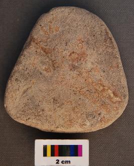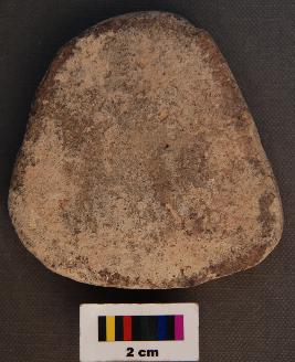 | Description / विवरण | It is a triangular terracotta cake with round edges and uneven thickness. |