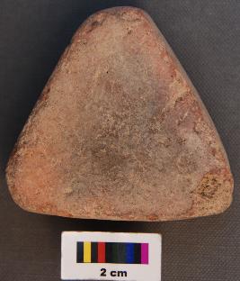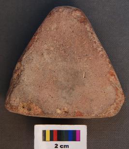 | Description / विवरण | It is a triangular terracotta cake with thick body and black patch on the surface. |