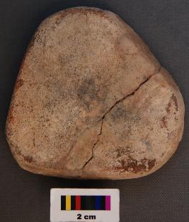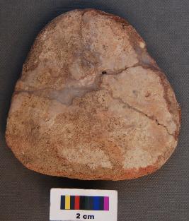 | Description / विवरण | It is a triangular terracotta cake with blunt corners and uneven thickness. Cracks are developed on the body. |