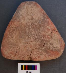 | Description / विवरण | It is a triangular terracotta cake with thick body and uneven thickness. |