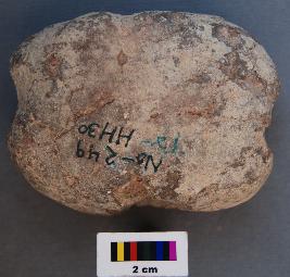 | Description / विवरण | It is an oval shaped musthika with prominent depressions on all four sides. In these depressions fingers of left hand fit well. |