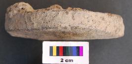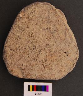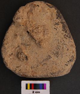 | Description / विवरण | It is a triangular terracotta cake with blunt corners, greyish in appearance. Cracks are developed on its body. |