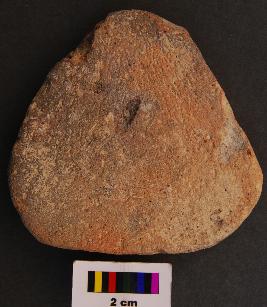 | Description / विवरण | It is a triangular terracotta cake with blunt corners, equal arms and thick section. |