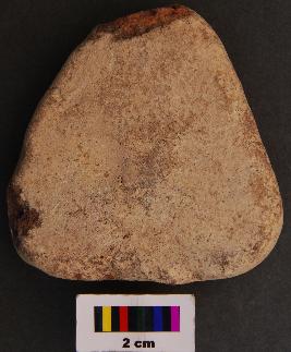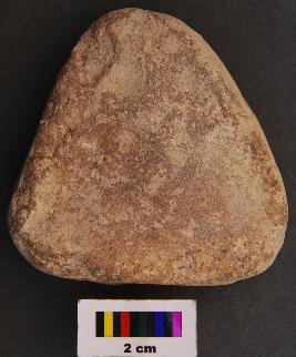 | Description / विवरण | It is a triangular terracotta cake with blunt corners, equal arms and thick section. It is partially broken at the corners. |