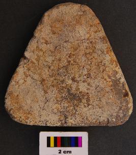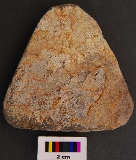 | Description / विवरण | It is a triangular terracotta cake with blunt corners and equal arms. |