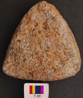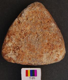 | Description / विवरण | It is a small triangular terracotta cake with equal arms and thick section. |
