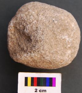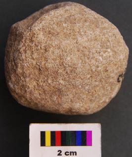 | Description / विवरण | It is shperical stone ball with uneven surface. It has batter marks and may have been used as a hammer. |