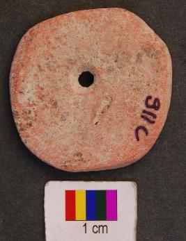 | Description / विवरण | It is a circular perforated disc. The perforation is slightly off the center. It is perhaps a gamesman. It has very thin section. |