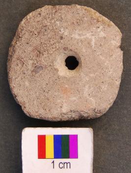 | Description / विवरण | It is a perforacted terracotta disc with perforation in the central part. It is edge is partially grind. |