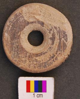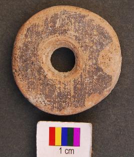 | Description / विवरण | It is perforated disc type object with a preforation in the central part. Its edges and perforation is grind and therefore it was perhaps used as wheel. |