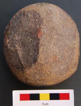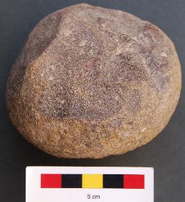 | Description / विवरण | It is roughly round stone ball, the surface of which is partially broken. |