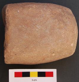 | Description / विवरण | It is fragment of a pounder with squarish section and circular at the pounding end. It has batter marks on the face and surface is polished. |