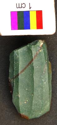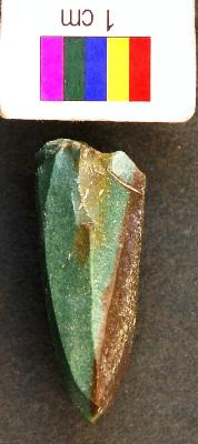 | Description / विवरण | It is long fluted core of green stone from which very thin blades have been removed. Its striking end has also been flaked off. |