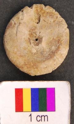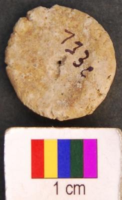 | Description / विवरण | It is a small tablet like terracotta disc, which is prepared by pinching. Its thickness is not uniform. A perforation is attempted in the central part. |