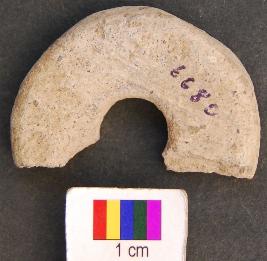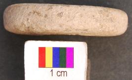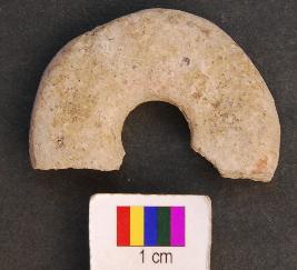 | Description / विवरण | It is terracotta disc with a perforation in the central part. The perforation has a vertical section. Therefore perhaps it was used as wheel. It is partially broken. |