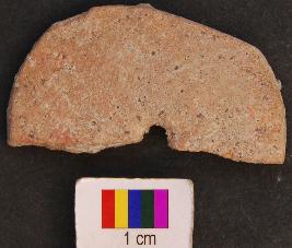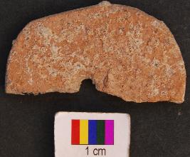 | Description / विवरण | It is circular terracotta disc with a perforation in the central part. Its edges are irregular or rough. Its almost half portion is missing. |
