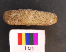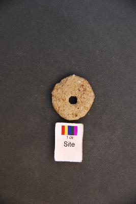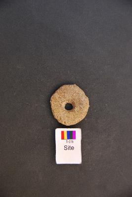 | Description / विवरण | It is terracotta disc with a perforation in the central part. It is made of a gritty ware pot sherd. |