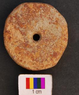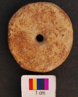 | Description / विवरण | It is terracotta disc with a perforation in the central part. |