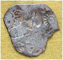 | Description / विवरण | The shape of the coin is irregular. Obverse Sun, Six armed wheel and some indistinct symbols. Reverse Sun and indistinct symbols. |