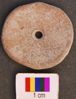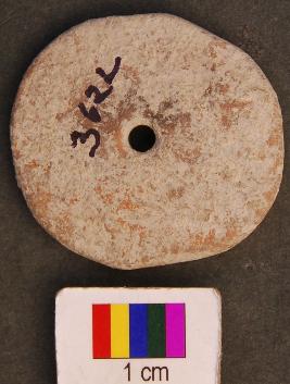 | Description / विवरण | It is circular terracotta disc with thin section and a perforation in the central part. |