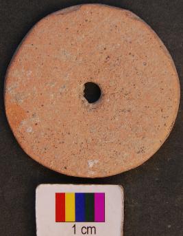 | Description / विवरण | It is terracotta disc with thin section and a perforation in the central part. |