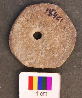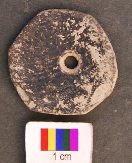 | Description / विवरण | It is facetted terracotta disc with a perforation slightly off the central part. |