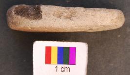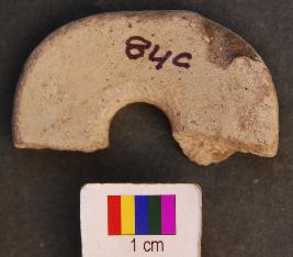 | Description / विवरण | It is circular terracotta disc with a perforation in the central part. Its half portion is missing and edges as well as perforation are grind. The perforation has a damru shaped section. Perhaps it was used as a net sinker. |
