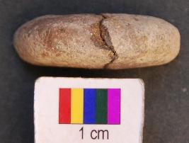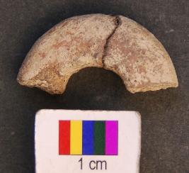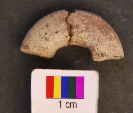 | Description / विवरण | It is fragment of circular terracotta disc with a perforation in the central part. Its edges as well as perforation are grind. Perhaps it was used as net sinker. |