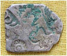 | Description / विवरण | The shape of the coin is irregular. Obverse Tree, chakra and some indistinct symbols. Reverse Indistinct symbols. |