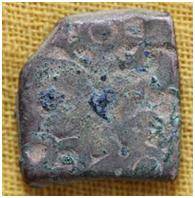 | Description / विवरण | The shape of the coin is irregular. Obverse Six armed wheel and some indistinct symbols. Reverse Blank. |