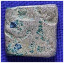 | Description / विवरण | The shape of the coin is rectangular. Obverse Animal figures and two indistinct symbols. Reverse Blank. |