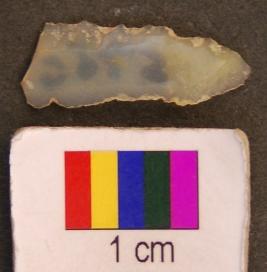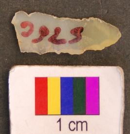 | Description / विवरण | It is a parallel sided blade with both retouched and thin section. Its striking end is missing. Its distal end is pointed. |