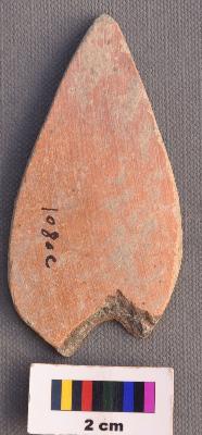 | Description / विवरण | It is a leaf shaped terracotta object with thin section. |